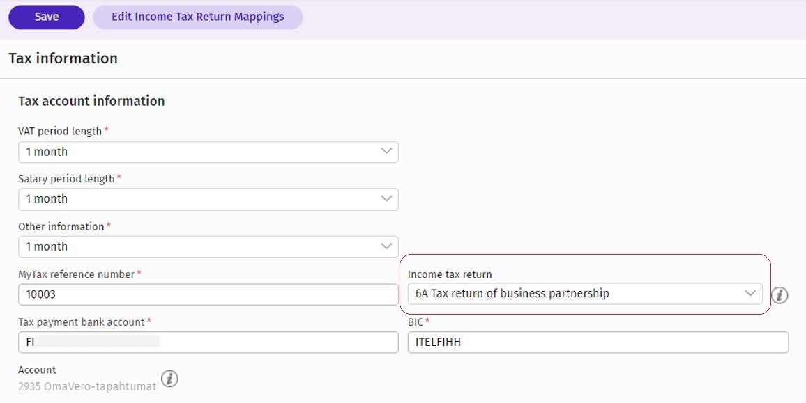 In addition, the income tax return form 6A should be selected in Management > Accounting info > Tax information from the drop -down menu.