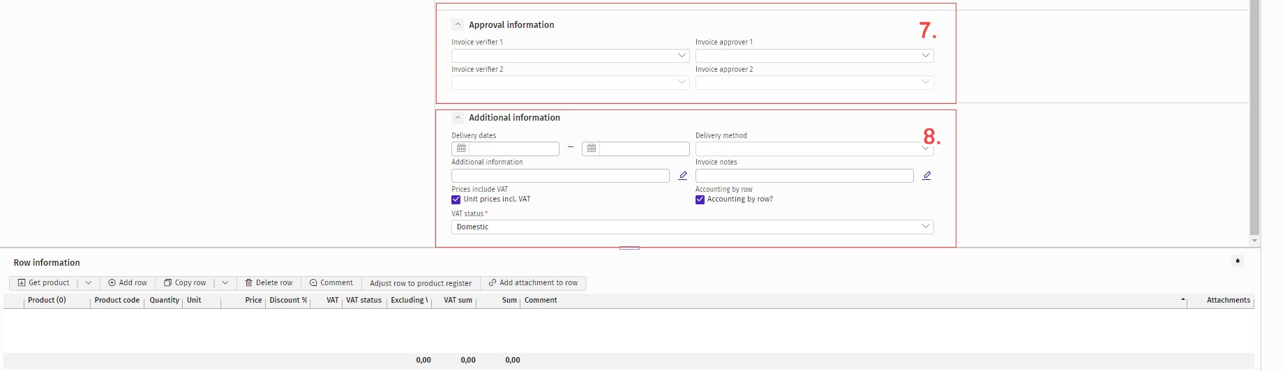 This article covers information about buttons and sections of the purchase invoice. Further information about creating new purchase invoice can be found here.