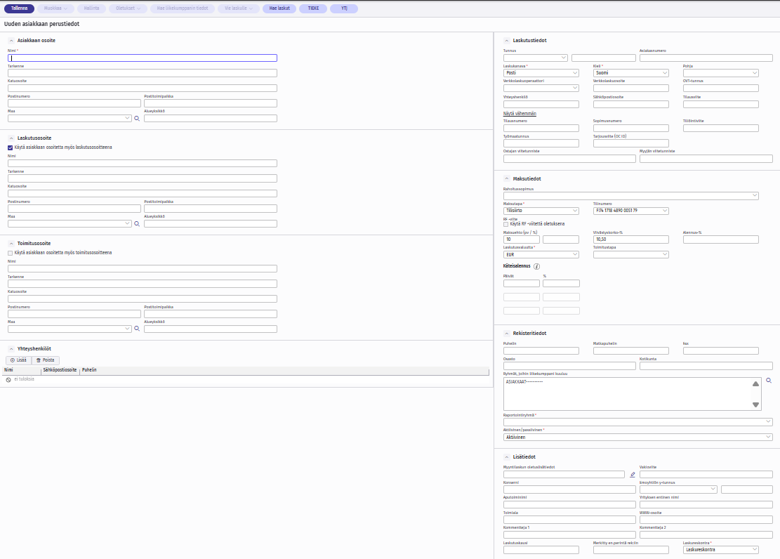Syötä asiakkaalle halutut tiedot, kuten nimi ja osoite.